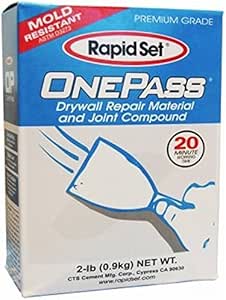 The formulation of ONEPASS includes premium grade hydraulic cement high performance polymers and quality finely ground aggregate. Rapid Set OnePass is an all-purpose durable fast setting wall repair and joint compound. Use Rapid Set OnePass to finish or repair gypsum board drywall cement-based backer boards and other compatible building materials.